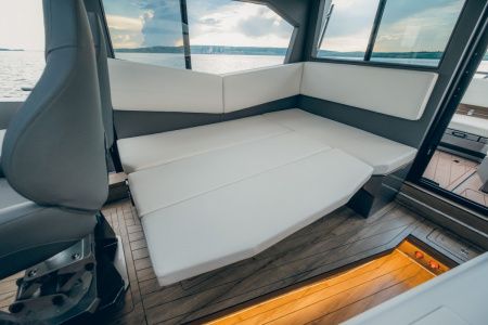Крупный алюминиевый катер с закрытой кабиной, ориентированный на комфортные дальние переходы, продолжительный отдых и эксплуатацию в различных погодных условиях. Прочный корпус, продуманная компоновка и высокий уровень оснащения обеспечивают безопасность, устойчивость и удобство для экипажа и пассажиров. Модель сочетает премиальный уровень комфорта и функциональность, подходя для путешествий, отдыха и активного использования на воде.
